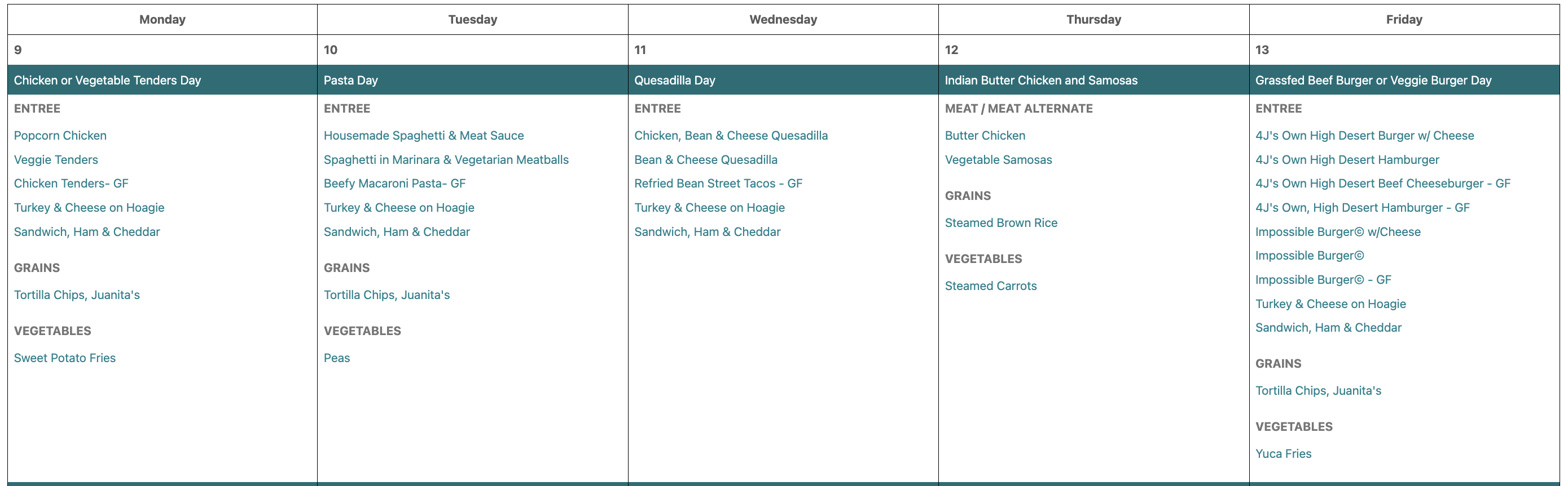 Breakfast and lunch menus are available on the 4J Menu Website. Make sure you filter to Holt Elementary.