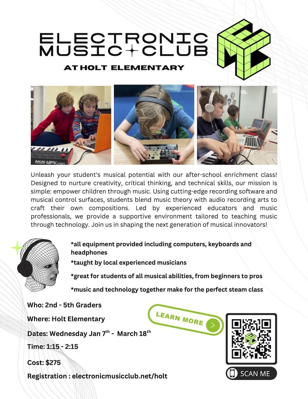 Details coming soon, but watch for more information about Checkmate Academy coming to Holt after school once a week, starting in January or February. $25 per student for each 60-minute session.