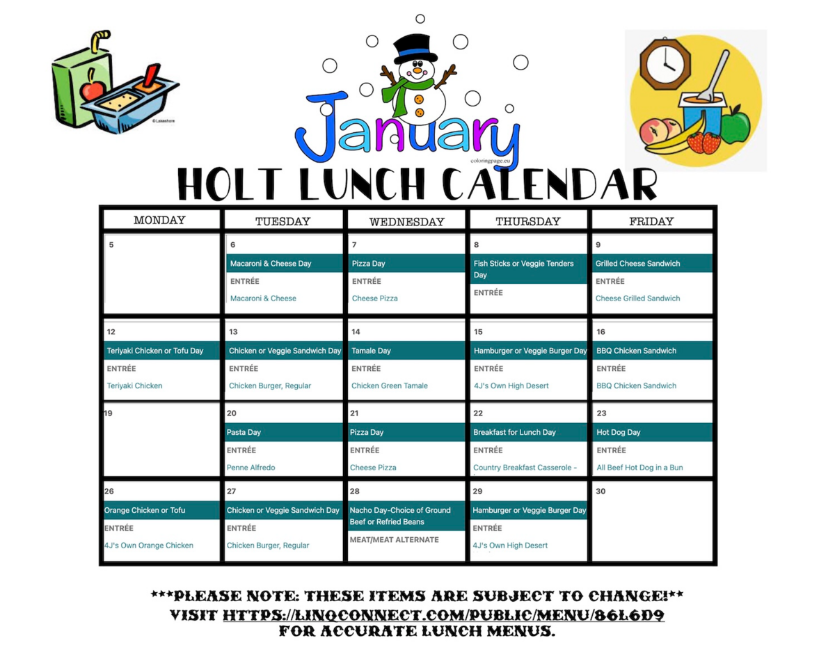 Breakfast and lunch menus are available on the 4J Menu Website. Make sure you filter to Holt Elementary.