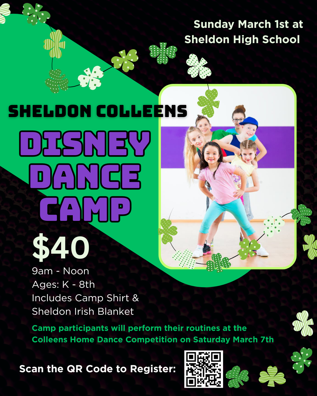 The Sheldon Colleens invites K–8 students to the Disney Dance Camp at Sheldon High School on Sunday, March 1, from 9:00 AM–12:00 PM — register here and see the attached flyer for details.Chess Club - Checkmate Academy (New Start Date!)