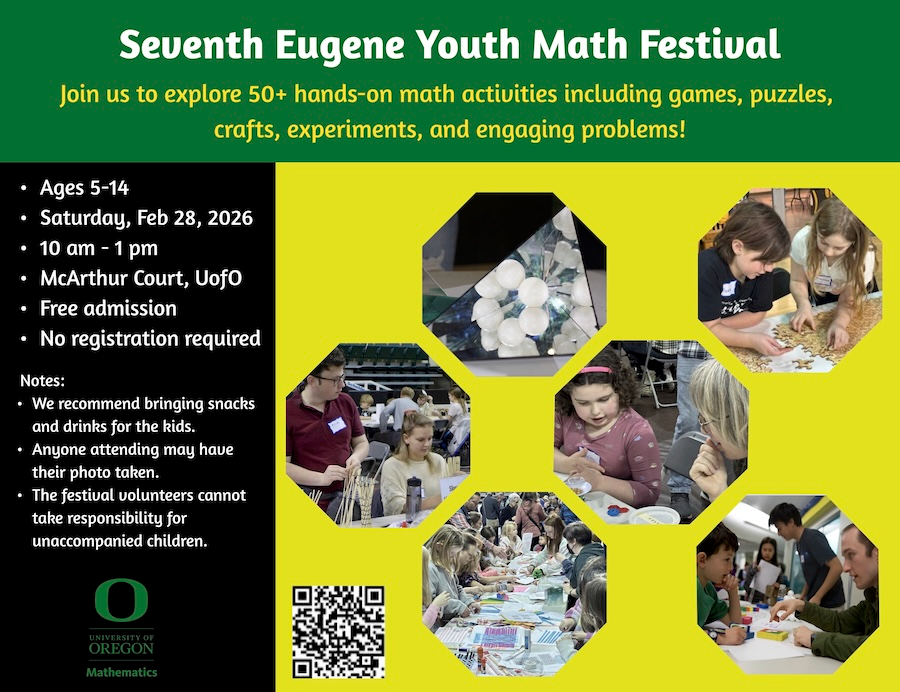 7th Annual (FREE!) Math Festival at UO, Feb. 28