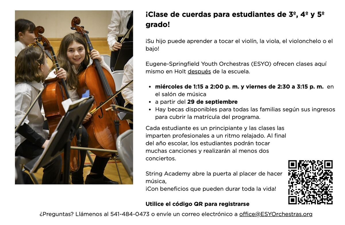 ¡Estoy muy emocionada de ser la nueva profesora de música en Holt! Enseñé en Springfield durante 24 años y estoy muy contenta de dar clases en Eugene, donde vivo. Me divierto muchísimo enseñando música a sus hijos a través del movimiento, la danza, los instrumentos, el canto y los juegos. Mantengo nuestras clases de media hora llenas de acción con una variedad de actividades. ¡Espero que algunos de sus hijos hayan compartido alguna canción que hayan aprendido!